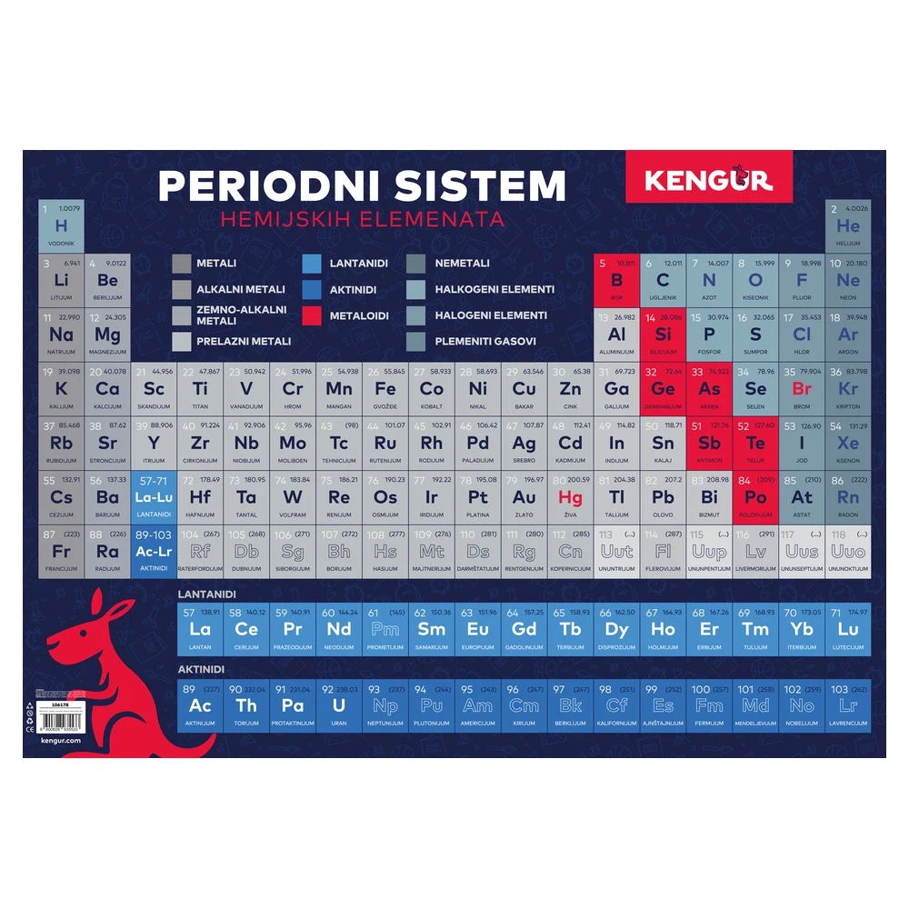 Mensa XL, poster, periodic table of elements, B2. Modern, clean layout with color-coded groups and dedicated lanthanide/actinide rows for quick reference. Large, legible typography and a high-contrast palette enhance readability. Ideal for classrooms, labs, and offices seeking a stylish, informative display.