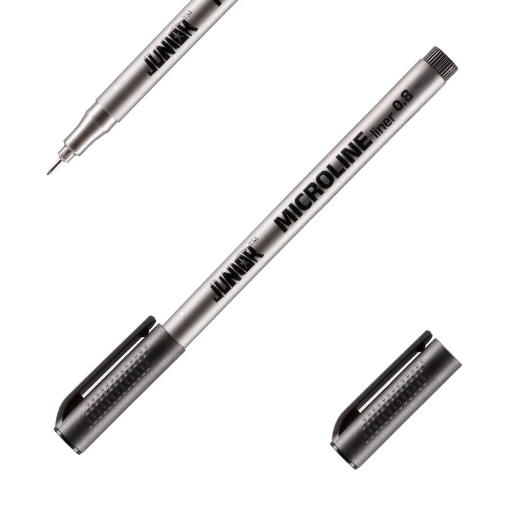 Microline liner, black, 0.8 mm. Sleek grey barrel with a clean, modern look. Creates crisp, uniform lines suited to sketching, outlining and notes. Box of 12 supports bulk purchasing and easy distribution. Reliable everyday choice for classrooms, studios and offices.