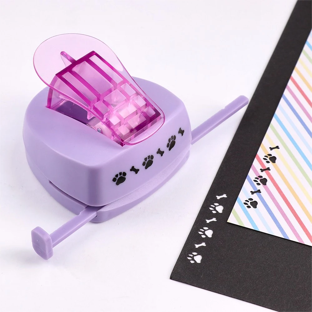 Mini Cut Border, paw and bone punch by Jolly paper. Creates clean decorative edges on paper. Trendy pastel housing with translucent lever and sturdy plastic build. Delivers crisp, repeatable motifs for scrapbooks, cards, and packaging accents. Compact, durable, display-ready.