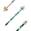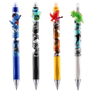 Mistic erasable pen delivers precise 0.5 mm blue lines with smooth writing and clean erasing via the built-in eraser cap. Trend-forward Dino skate graphics and a 3D dinosaur topper drive shelf appeal. Durable plastic barrel with metal tip ensures everyday reliability.