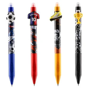 Mistic erasable pen, blue, 0.5mm. Football Premier design with vibrant prints and 3D toppers (ball, jersey, boot, trophy) for strong shelf impact. Smooth writing with a top eraser for quick corrections. Durable plastic barrel supports everyday use and sports-themed promotions.