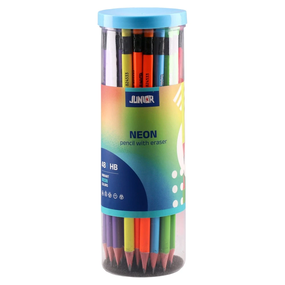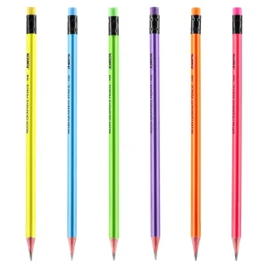 Neon, pencil with eraser, HB. Wood-cased HB graphite pencil in vibrant neon finishes for standout presentation. Smooth everyday marking. Black metal ferrule with color-matched eraser for tidy corrections. Assorted neon colors enhance shelf appeal for school, office, and retail.