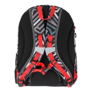 Next, anatomic backpack, Manga. Trend-forward black/grey/red design with bold manga graphics and high-contrast zipper pulls. Practical layout with main compartment, two front zip pockets and a side mesh pocket. Durable look and retail-ready appeal for school and leisure categories.