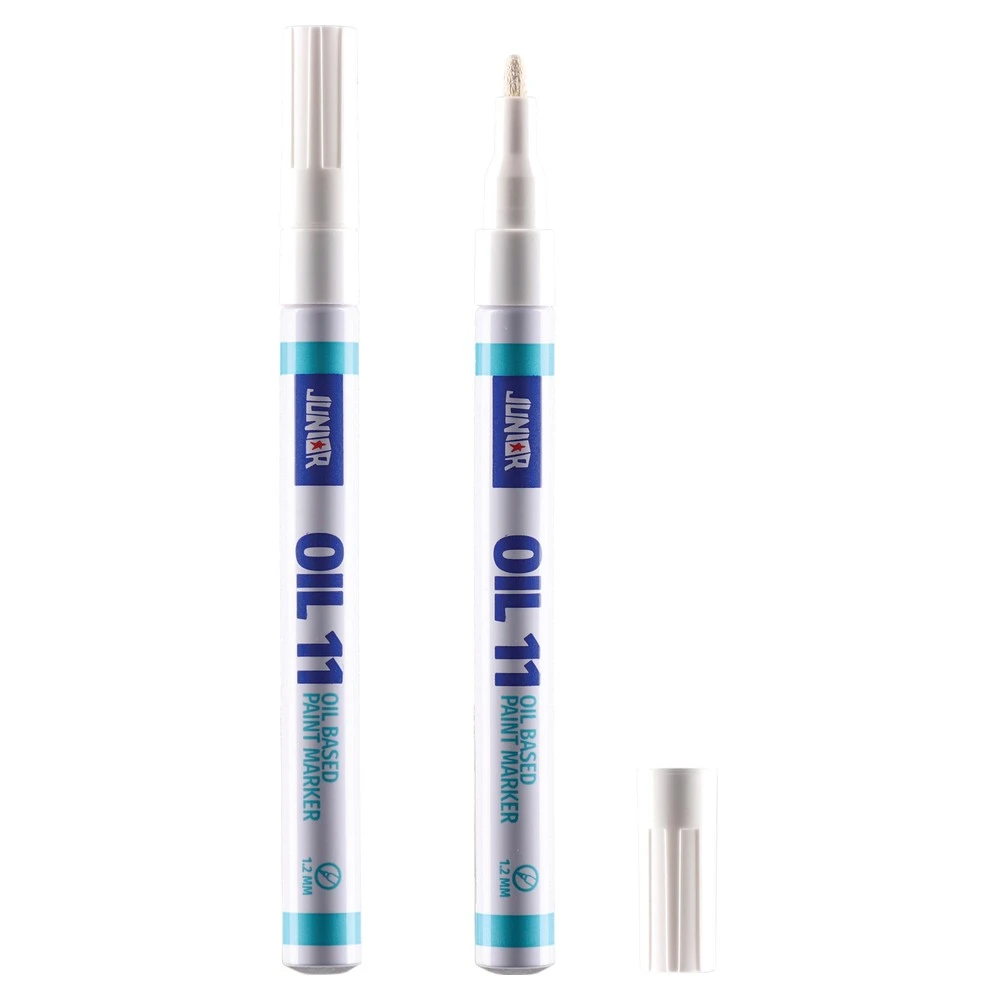Oil 11 paint marker, fine, white. Oil-based paint ink in a stylish plastic barrel with secure cap. Fine tip delivers controlled, clean lines in bright white. Contemporary design and quality construction make it a dependable, high-appeal choice for professional assortments.