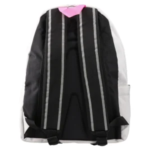 Onepack, backpack, gray. Clean, contemporary silhouette in durable woven fabric. Spacious main compartment and front zip pocket with pink “play” embroidery; color-accent puller and side tie detail add a trendy touch. Quality stitching and robust zips suit everyday use and strong retail appeal.