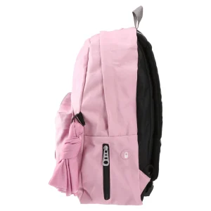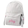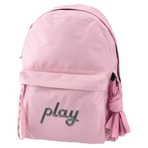 Onepack backpack in pink offers a clean, on-trend look in sturdy woven fabric. A roomy main zip compartment pairs with a front zip pocket featuring bold “play” embroidery. A text-strap zipper pull, side knot detail, and structured shape enhance shelf appeal for fashion-led assortments.