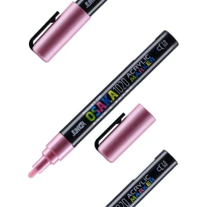 Osaka 1020 Acrylic Marker, 2.0 mm, Metallic Rose (GM 307). Sleek black barrel with stylish rose cap. Bullet tip delivers clean, consistent lines. Trend-forward metallic shade enhances highlights, accents, and lettering. Reliable build for retail and studio use.