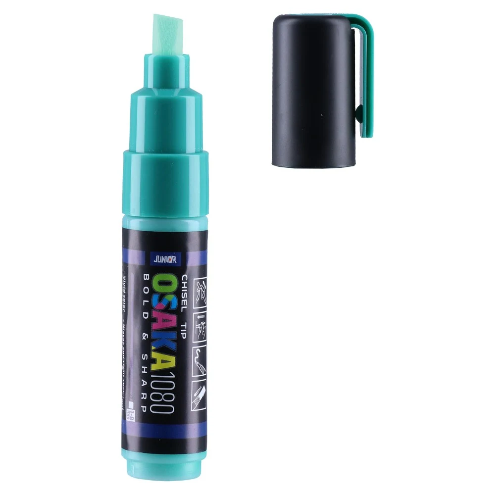 Osaka 1080 acrylic marker in green (G 127) with a chisel tip for 1–8.0 mm strokes. Trendy, chunky barrel and secure cap ensure confident handling and storage. Produces bold, sharp marks suited to signage, display work, labeling, and high-impact visuals.