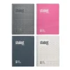 Wirebound A4 notebook with 150 sheets for high-volume notes. Trendy textured covers in assorted colors and rounded corners deliver a modern, durable look with strong shelf appeal. 4+2 layout supports mixed note formats. Reliable wire spiral ensures flat opening and smooth page turns.