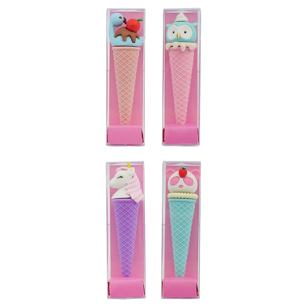 Pixi grand Ice Cream Eraser: pastel novelty erasers shaped as waffle cones with character toppers (owl, unicorn, panda, dinosaur). Trend-forward colors and textured details boost shelf appeal. Each piece is individually boxed in a clear case for neat merchandising and impulse sales.