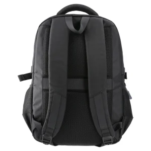 Pop cool, backpack, Medano: Sleek black urban design with bold typography. Built from durable fabric with a structured silhouette. Features multiple zip compartments, front pocket, side mesh bottle pocket, compression strap, sturdy top handle, and smooth zipper pulls – ideal for daily carry.