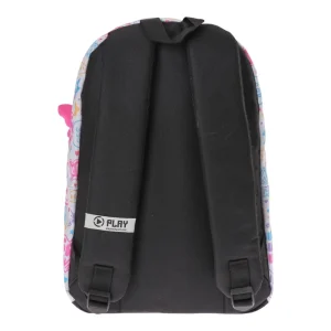 Pop fashion, backpack, Phrases: Trend-forward backpack with an all-over phrases and icons print in bright pastels. Durable printed fabric, main compartment, top handle, and a front zip pocket covered in multicolor sequins. Finished with a butterfly charm for strong shelf appeal.