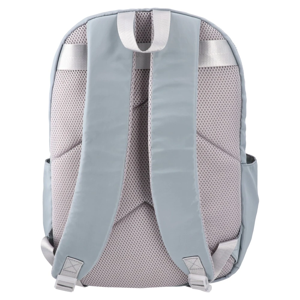 Pop fashion, backpack, Sleepy star blends a glossy light-grey finish with playful appliqués. Features a glitter star and embroidered lashes, zippered main compartment, front zip pocket, and two side pockets. Trend-forward look with clean stitching for everyday retail appeal.