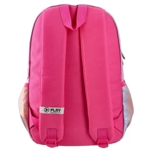 Pop fashion, backpack, Sweet delivers standout shelf appeal with a shimmering pastel gradient and quilted panels. Includes a main zip compartment, front zip pocket, side pocket, and piped edges. PLAY patch, Sweet badge, and pink pom-pom keyring add trendy, impulse-driving detail.