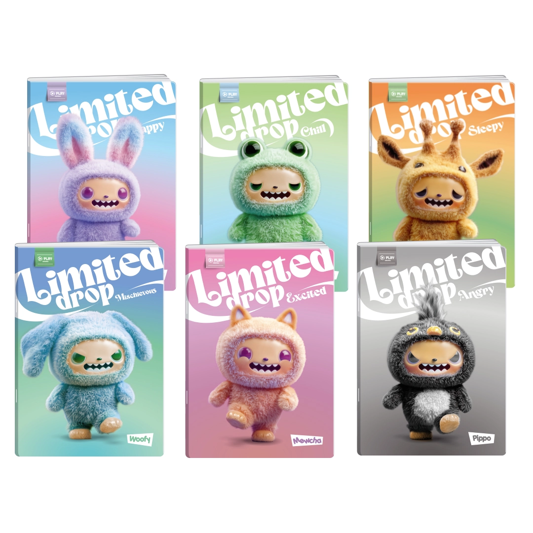 Premium 40 A4 lined notebook, 40 sheets. Limited Drop series with vibrant gradient covers and playful character art that pops at retail. Clean ruled pages support everyday notes. Assorted on-trend designs encourage collectability and quick sell-through for youth and lifestyle. Ideal for POS displays.