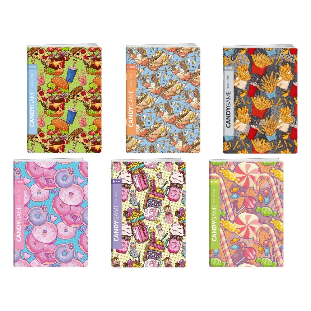 Premium 40 A5 lined notebook by Candygame. Features assorted, eye-catching food prints that drive shelf impact and fast sell-through. A5 size is practical for bags and desks; 40 lined sheets support daily notes and lists. Quality paper ensures clean writing. Ideal for retail sets and giveaways.
