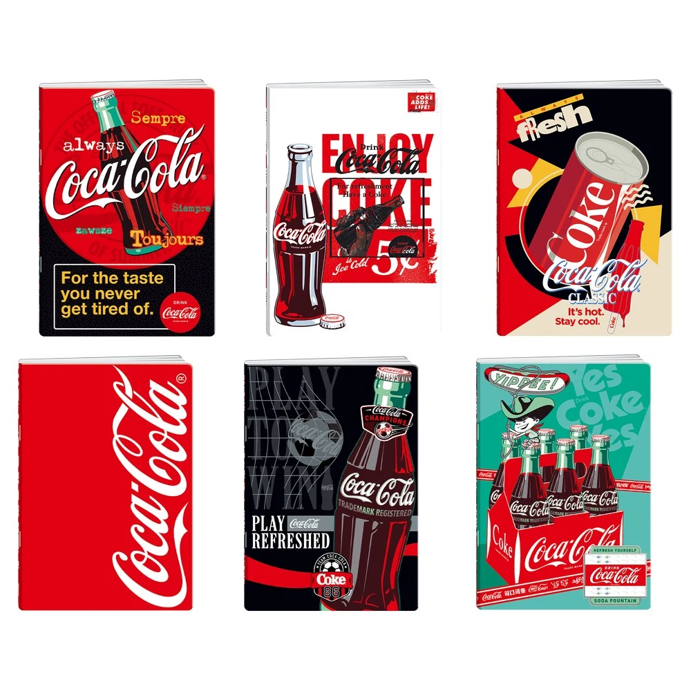 A5 notebook with 50 squared sheets featuring assorted vintage Coca‑Cola cover designs. Bold, full‑color graphics deliver on‑trend shelf impact and strong brand recognition. Practical grid pages for organized notes; a compact, high‑turnover pick for retail and corporate gifting.