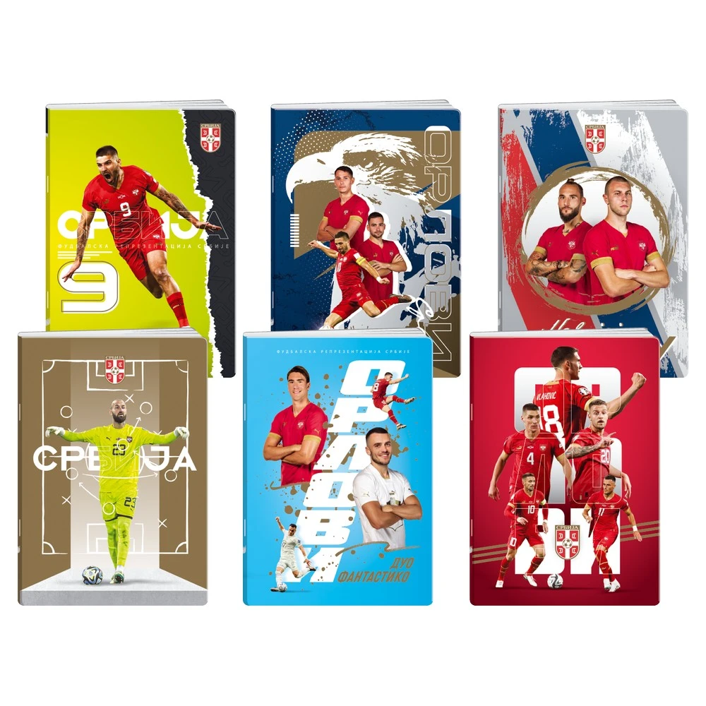Premium 50 notebook, A4, double line, 50 sheets. Staple-bound with bold FSS football graphics and assorted covers with crest. Quality paper supports neat handwriting; sturdy build for daily use. Trend-forward design drives shelf impact for sports and school assortments.