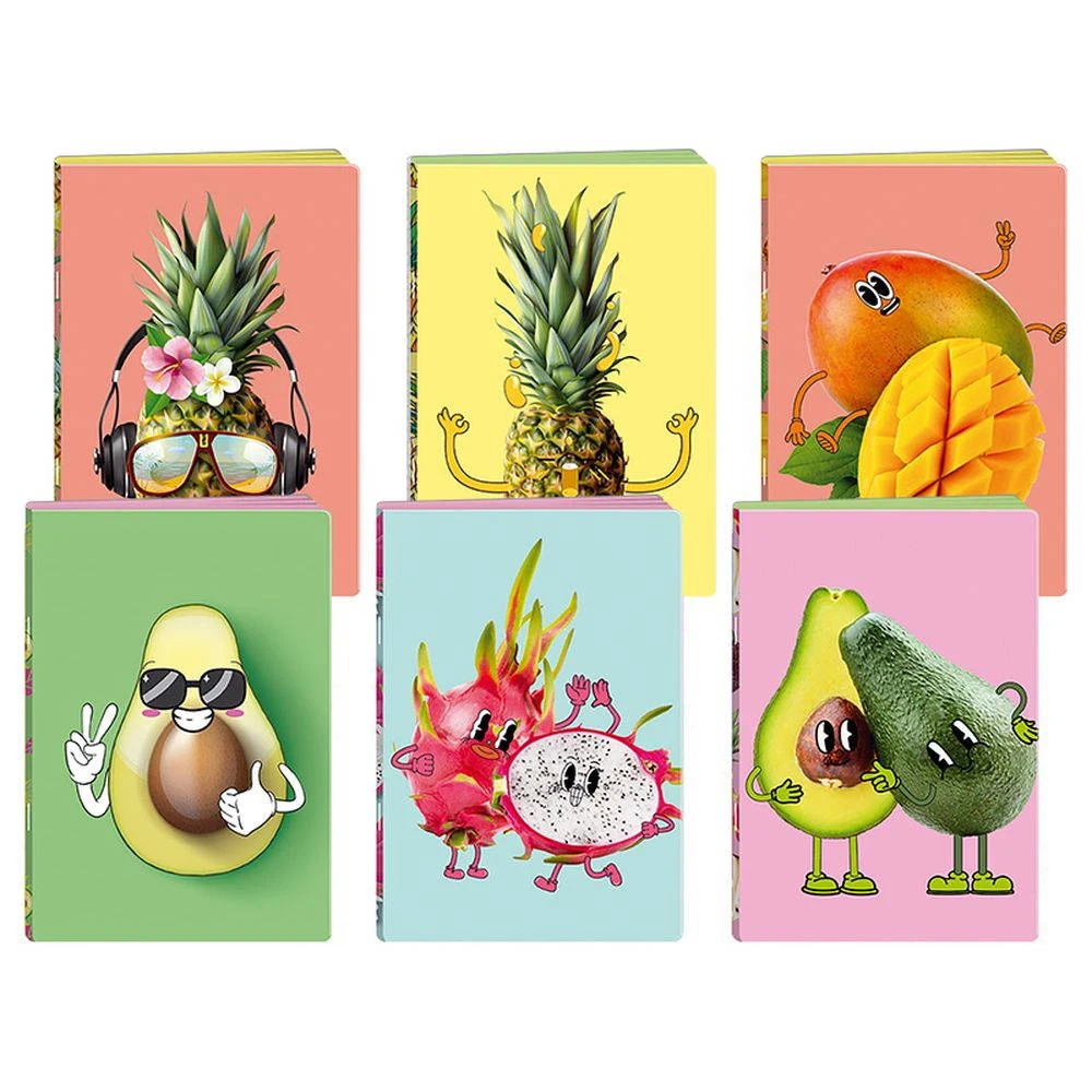 Premium 50 notebook with UV, A4, lined, 50 sheets. Vibrant fruit character covers with UV finish deliver standout shelf appeal. A4 format and ruled pages support everyday writing. Assorted designs ideal for retail assortments and trend-led stationery ranges.