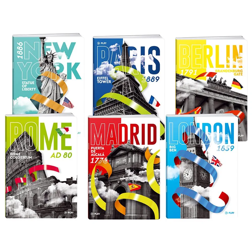 Premium 50 is an A4 notebook with 50 blank sheets and a UV‑varnished cover for a premium finish. City by night series with trendy covers of iconic capitals (New York, Paris, Berlin, Rome, Madrid, London) delivers strong shelf appeal for retail and corporate stationery.