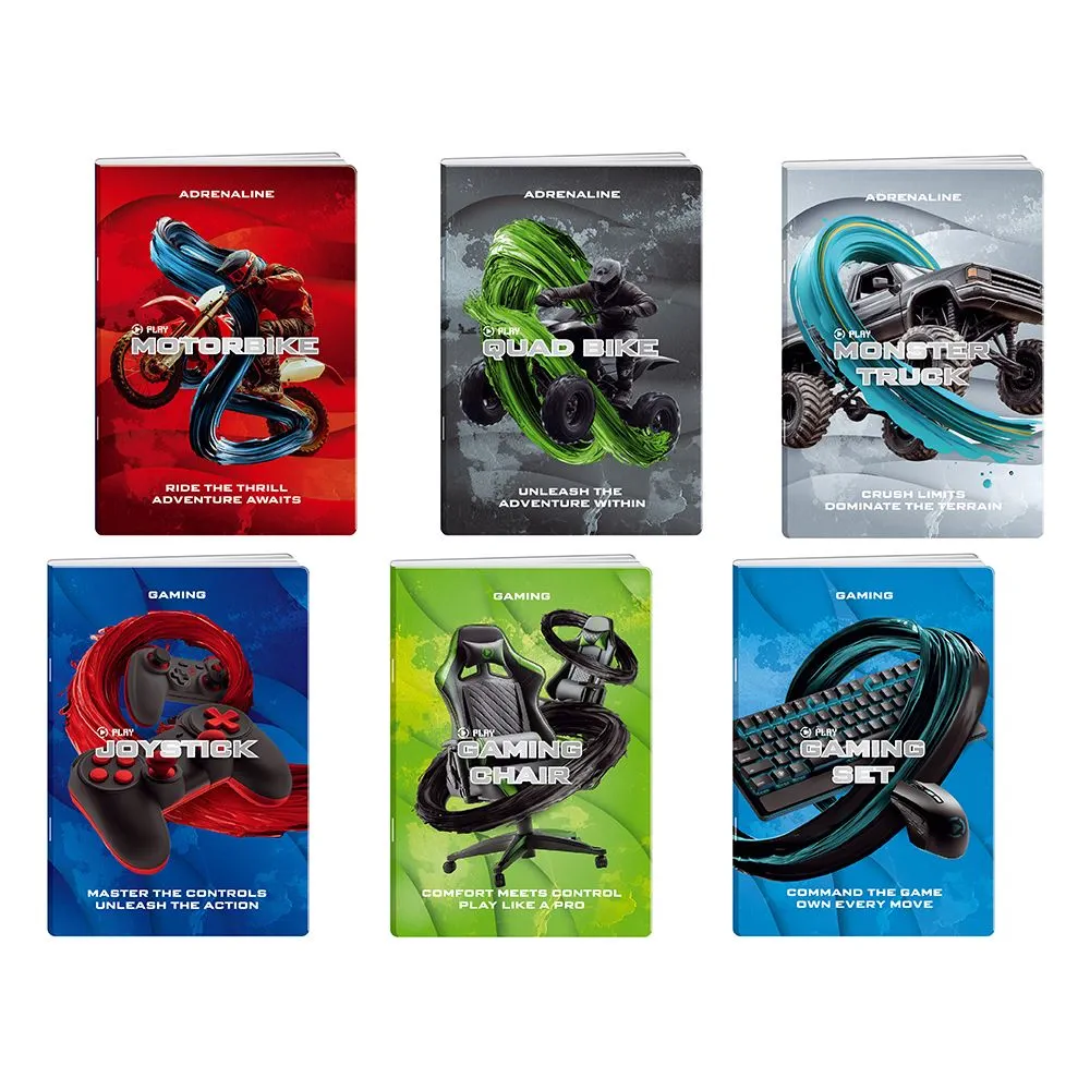 Premium 50, A5 notebook with UV‑varnished cover featuring bold Game‑themed artwork. The glossy finish enhances color depth for strong shelf appeal. Includes 50 squared sheets for tidy notes and diagrams. A trendy, quality choice for school and retail assortments.