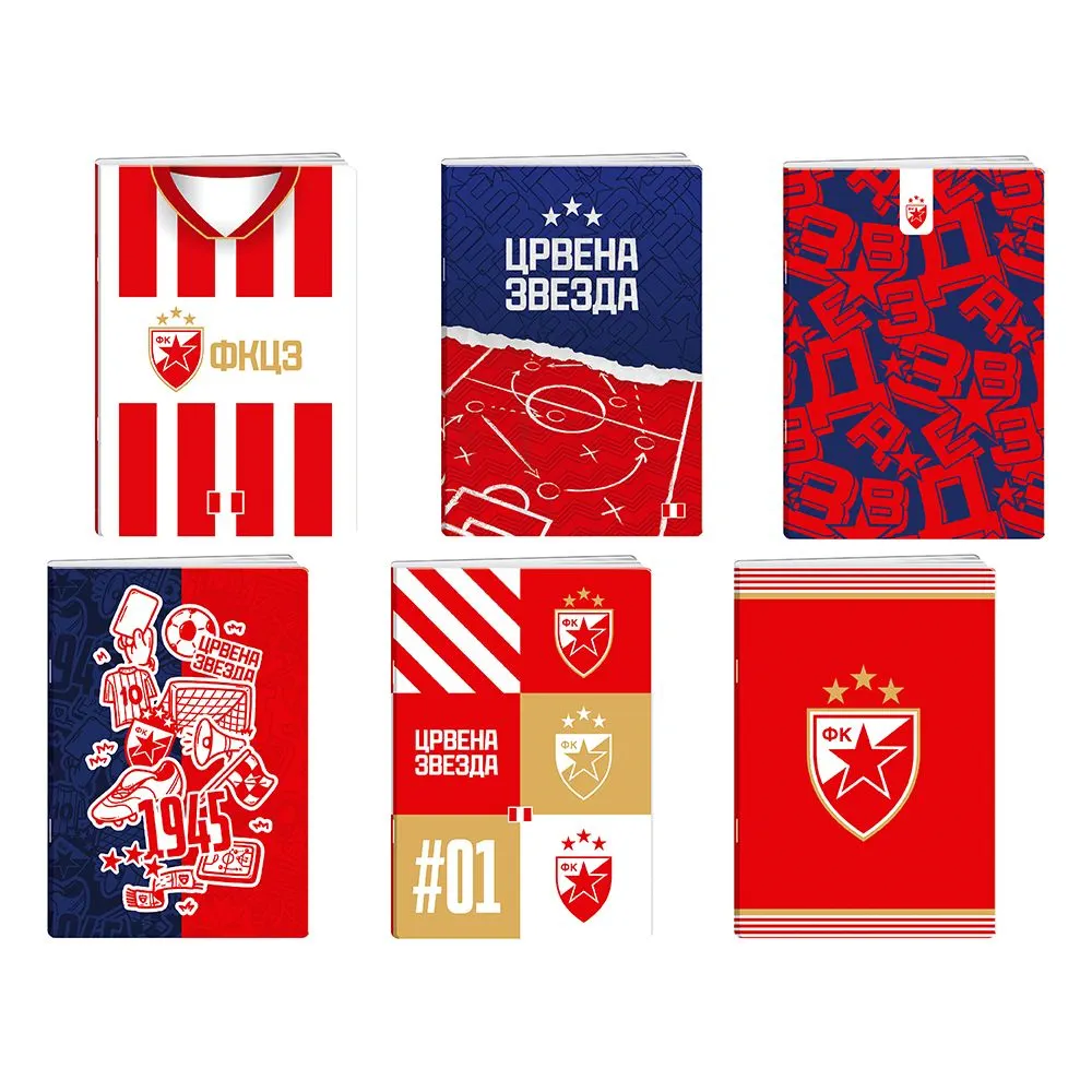 A5 Premium 50 notebook with squared ruling, 50 sheets. UV-varnished cover provides gloss highlights and added durability for standout shelf impact. Crvena zvezda branding in assorted red, white and navy designs, delivering trend-forward presentation and reliable sell-through.