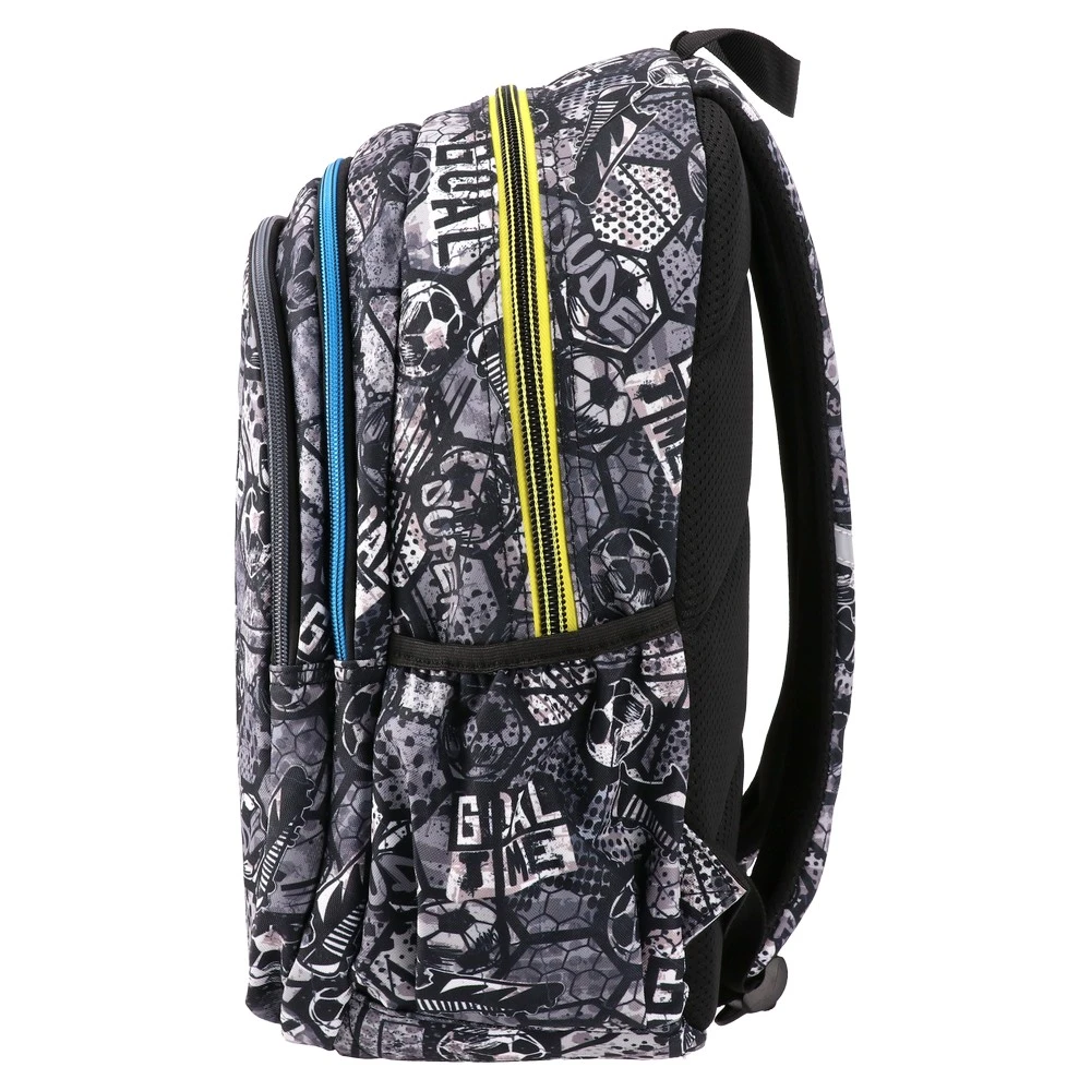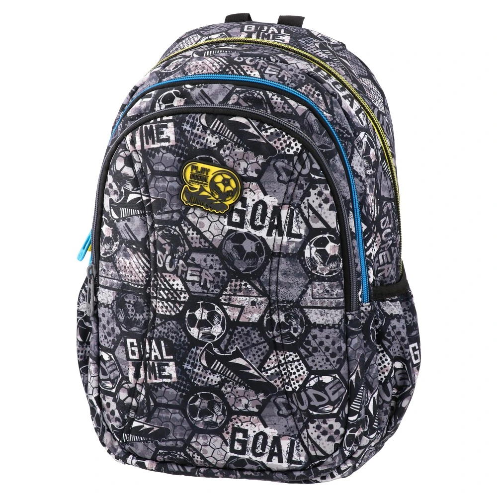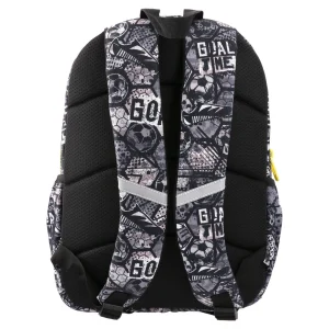 Remax Goal Rush backpack showcases a bold all-over football graphic with contrast zippers for a fresh, sporty look. It provides a roomy main compartment, two additional zip pockets, side pockets, and a top carry handle. Durable printed fabric and clean finishes suit daily use.