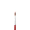 Ruby, brush, round, 5. Round brush with a tapered point for precise lines and smooth fills. Glossy red handle and robust metal ferrule provide a modern, durable build with strong shelf appeal. Size 5 balances detail and coverage, ideal for retail sets and studio use.