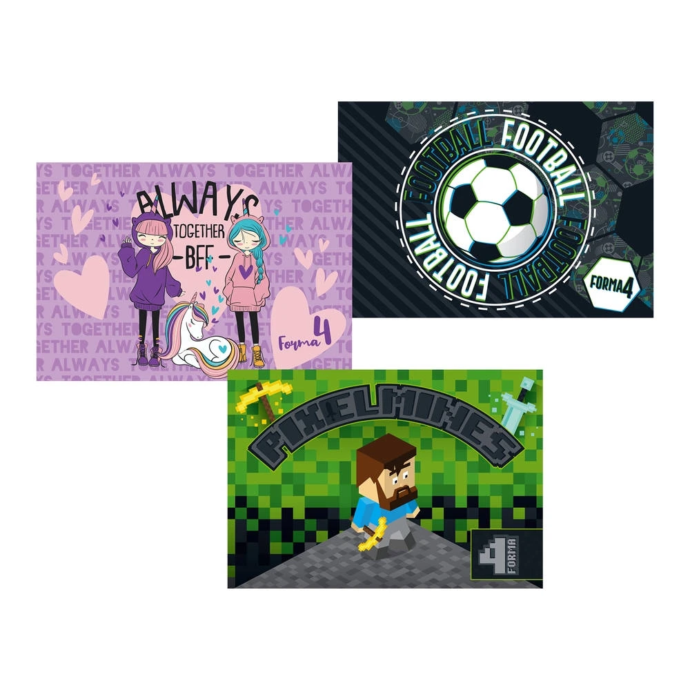 Sketch & toon, sketchbook No 4, 10 sheets. On-trend assorted covers—gaming isometric motif and floral script—boost shelf appeal. Durable paper pages for everyday sketching and notes. Versatile pick for education, hobby, and creative retail assortments.