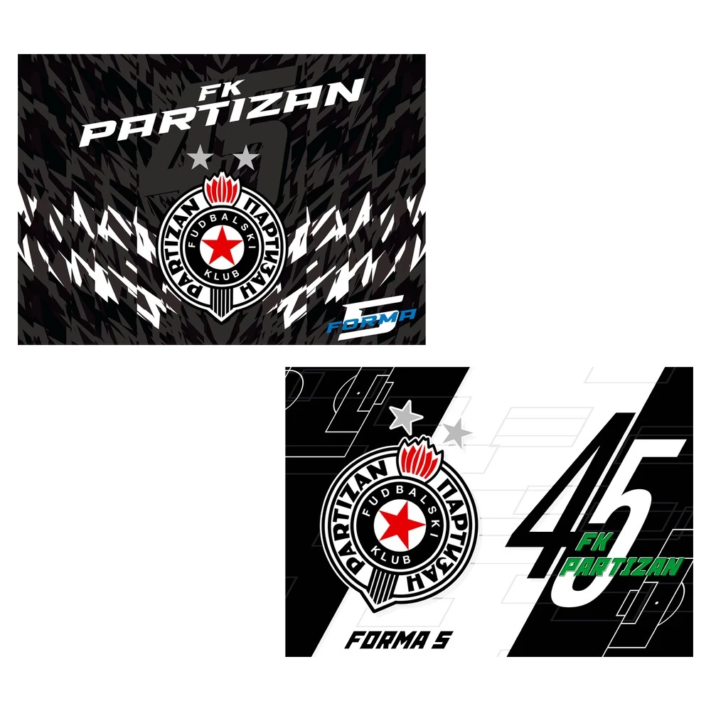 Trendy No 5 sketchbook featuring bold FK Partizan graphics. High-impact monochrome cover elevates shelf visibility and fan appeal. Contains 10 paper sheets for quick sketches and notes. Clean print quality and neat finish support everyday use in school, studio, or retail assortments.