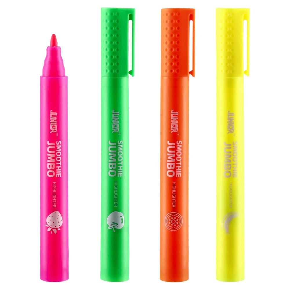 Smoothie, jumbo highlighter, scented, mix. Trendy neon colors with fruit icons for instant shelf impact. Jumbo barrel and textured cap offer a secure grip; clip adds convenience. Durable plastic construction and bold, smooth coverage suit offices, schools, and promotional sets.