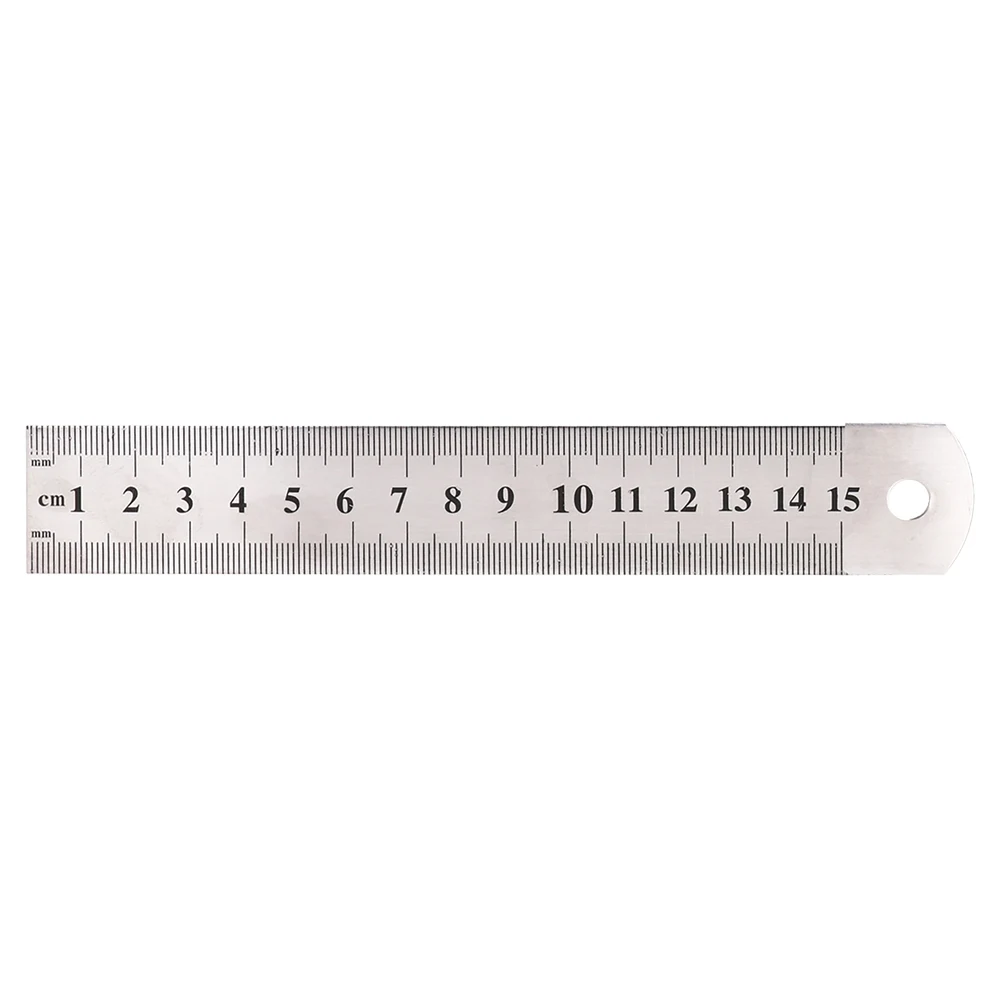 15 cm steel ruler for precise metric measuring. Durable steel body with clear cm/mm graduations for accurate reading. Sleek, modern finish and smooth straight edge support clean marking. Compact format with hanging hole for organized storage—ideal for workshops, studios, and offices.