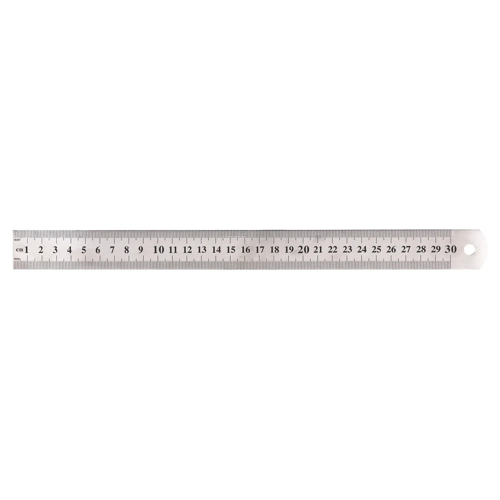 30 cm steel ruler with a precise metric scale and millimeter graduations for accurate measuring and clean cutting lines. Durable steel construction, clear easy-to-read markings, and a hang hole for storage. A sleek, professional choice for offices, studios, and workshops.