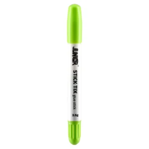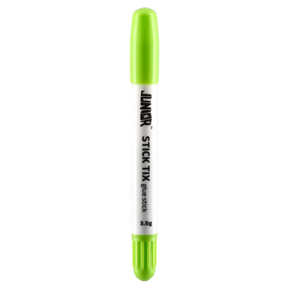 Stick Tix glue stick, 3.5g. Slim, pen-style barrel with green cap and ribbed end offers clean handling and easy storage. The compact size suits on-the-go kits and merchandising. Durable plastic body and clear labeling enhance shelf appeal while delivering neat, controlled gluing.