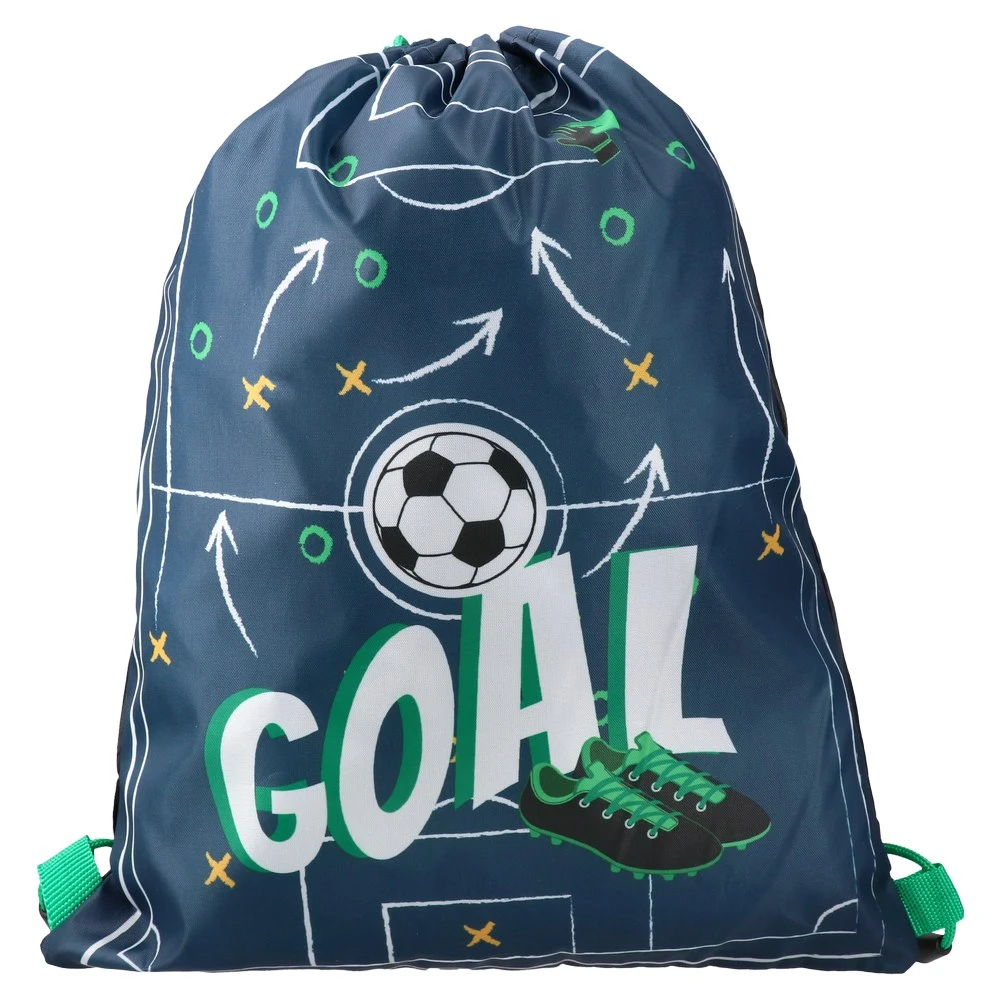 Talent, shoes bag security system, Pixel is a drawstring shoe bag with a trendy soccer-field and GOAL graphic. Smooth fabric and a secure drawstring closure with green cords. Vibrant, sport-led design ideal for merchandising kids’ footwear and training essentials.