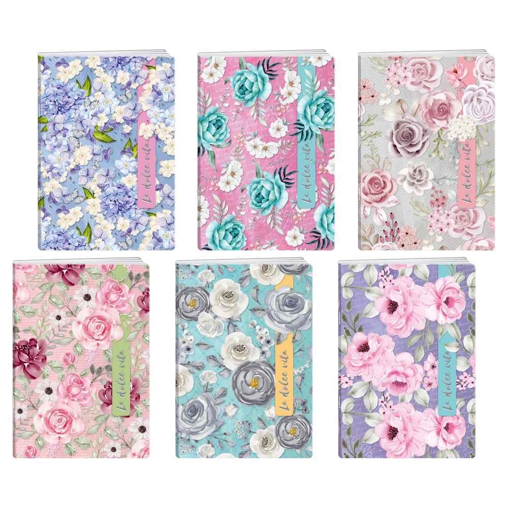 Tefto La dolce vita A6 notebooks with squared pages, 80 sheets. Assorted contemporary floral covers in pastel tones add strong shelf appeal. Compact, easy to carry, ideal for daily notes, gifting and impulse buys. Vibrant cover print supports a premium look.