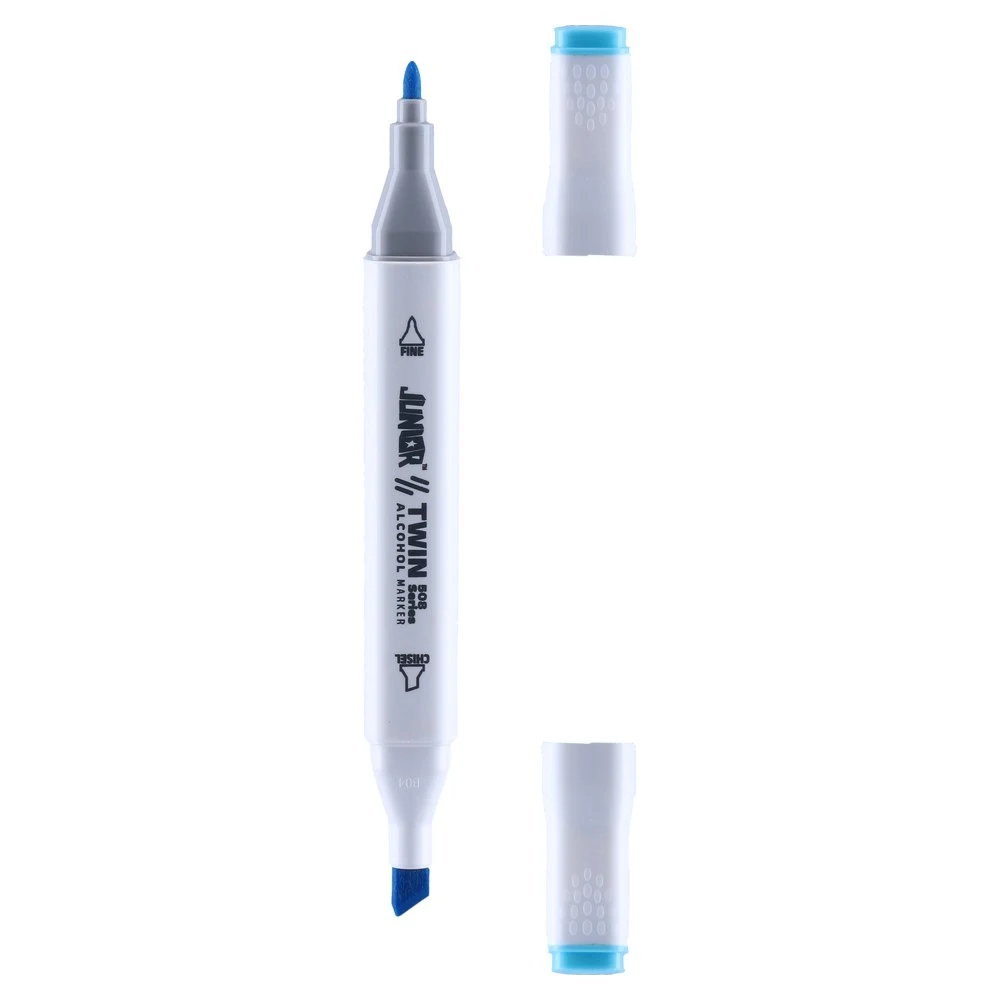 Twin 508 Alcohol Marker, Baby Blue 66. Dual-ended design with a fine bullet tip and a broad chisel tip. Sleek white plastic barrel with color‑indicator caps and subtle grip texture. Modern, studio-ready look tailored for precise lines and broad fills.