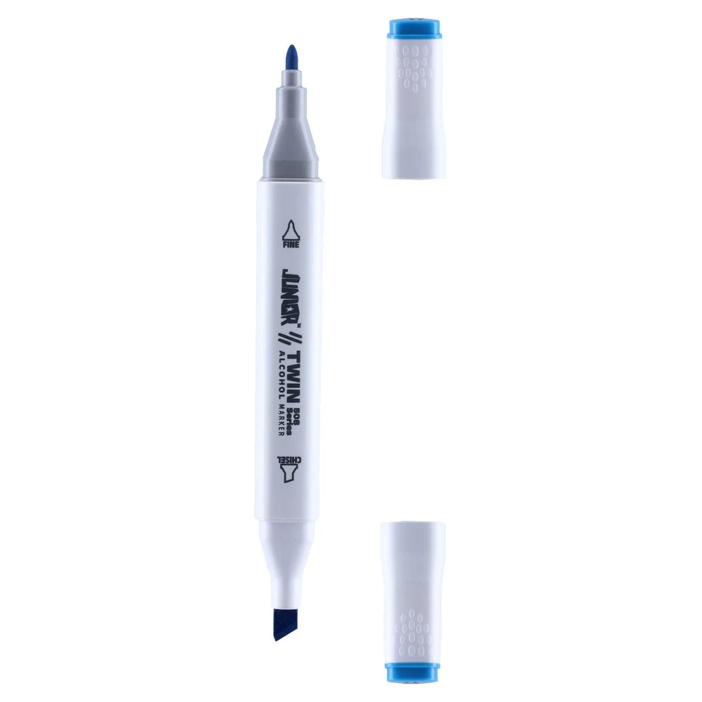 Twin 508 alcohol marker, Indian Blue (64). Dual-tip design with fine bullet and broad chisel for precise lines and uniform fills. Alcohol-based ink delivers rich, even coverage. Sleek white barrel with color-coded, textured caps for quick selection—ideal for design, illustration, and drafting.
