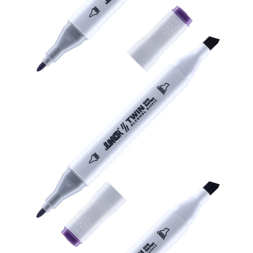 Twin 508 Alcohol Marker, dual-tip in Lavender 83. Sleek white barrel with chisel and fine bullet nibs for precise lines and broad coverage. Alcohol-based ink for smooth, even application. Color-coded caps aid quick selection. Ideal for professional sketching and rendering.