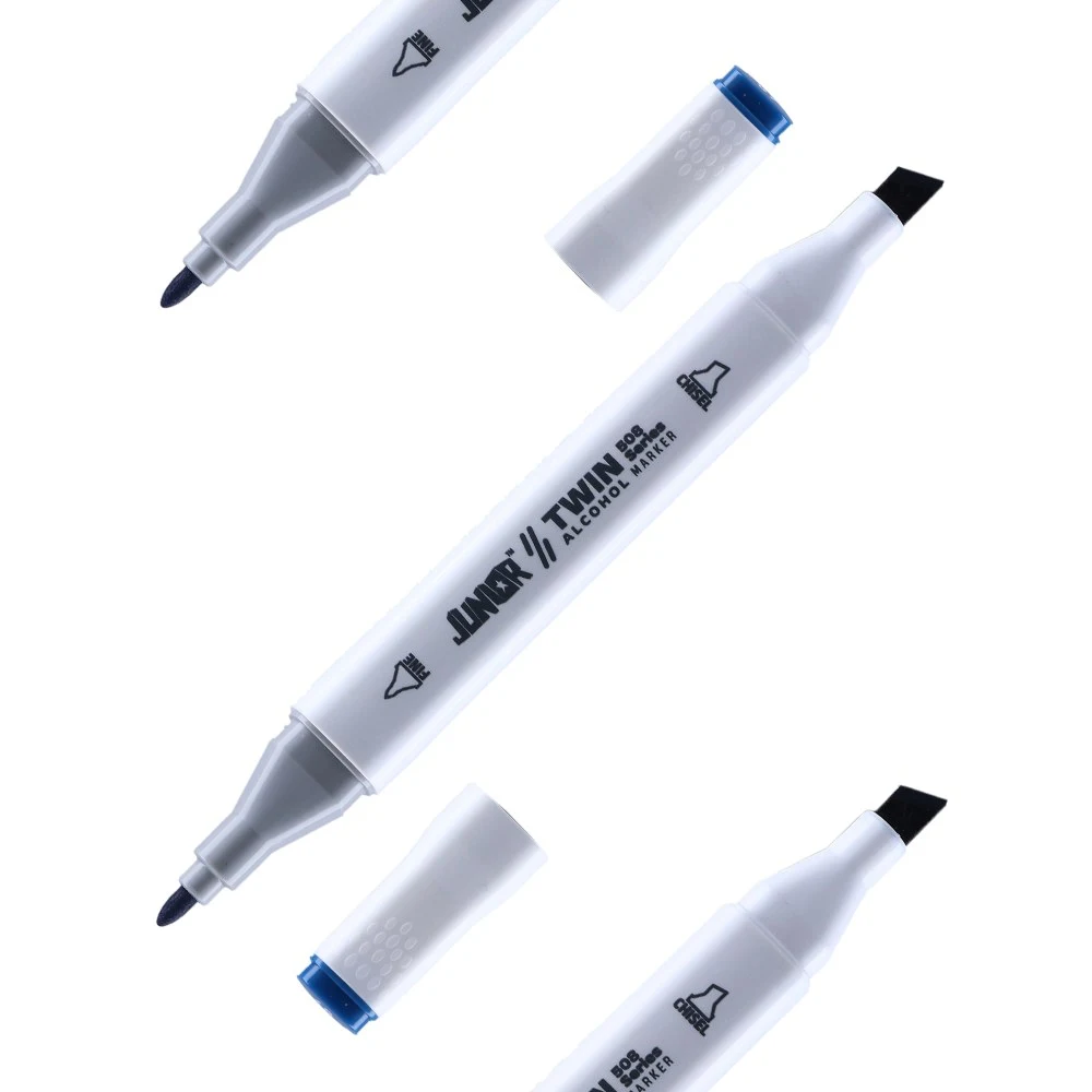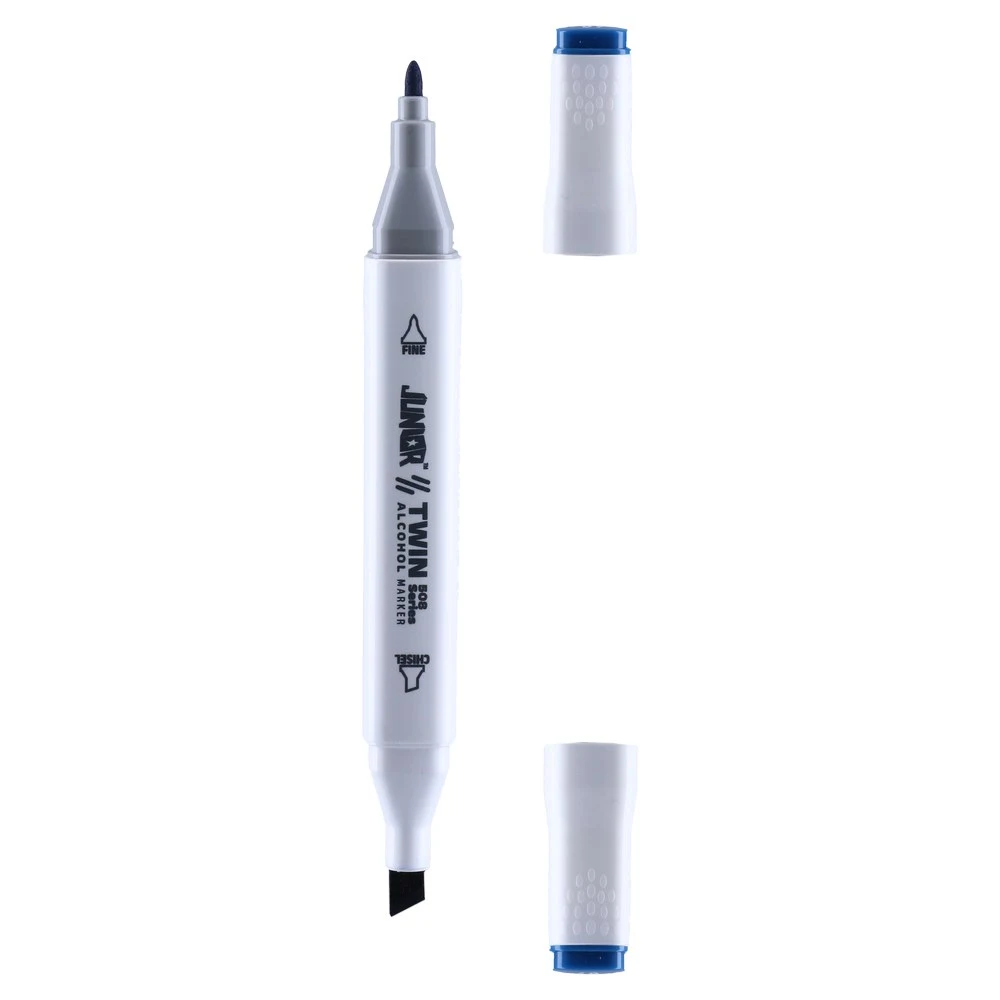 Twin 508 Alcohol Marker, Prussian Blue 69. Dual-tip design with fine bullet and broad chisel for line work and fills. Sleek white plastic barrel suits modern studio kits. Alcohol-based ink lays down solid, even color. Ideal for concept art, illustration and signage in professional workflows.