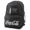 Xpack, backpack, Coca Cola, Black. Trend-led design with an all-over Coca-Cola print on a dark base and contrast red details. Smooth fabric build with robust zippers, roomy main compartment and front zip pocket. Bold branding boosts shelf impact and sell-through for fashion and gifting.