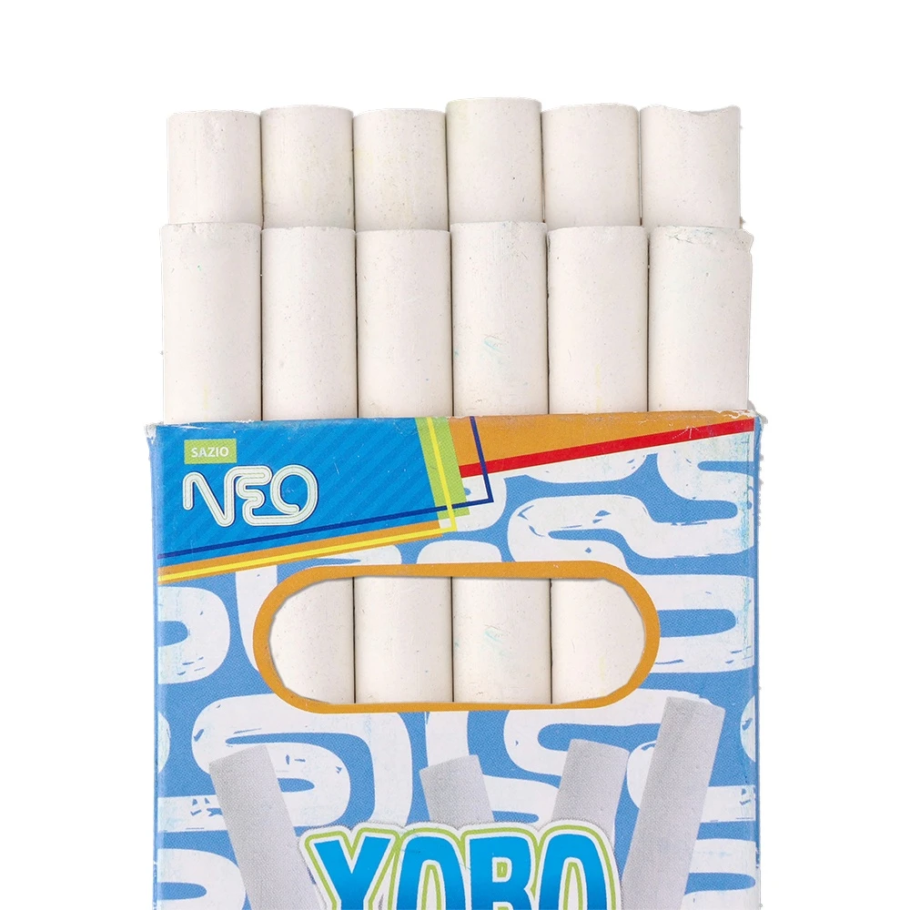 Yobo S, school chalk, white, 12pcs. Clean, bright white marks for classrooms and training spaces. Twelve uniform sticks in a modern, display‑ready box with viewing window and hang tab for easy merchandising. Smooth application and clear visibility support daily teaching tasks.